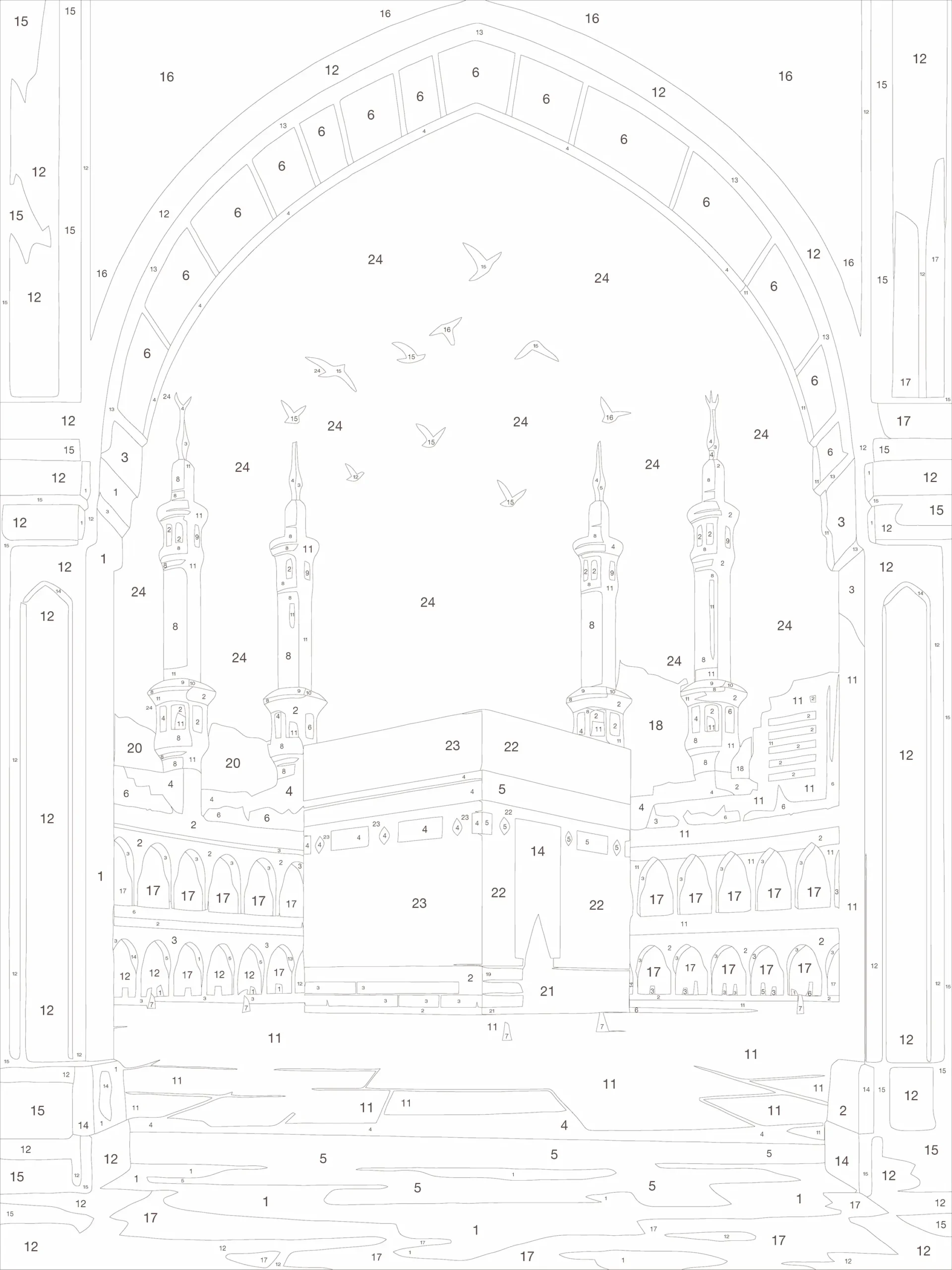 • Lienzo con diseño numerado de la Mezquita Al-Haram